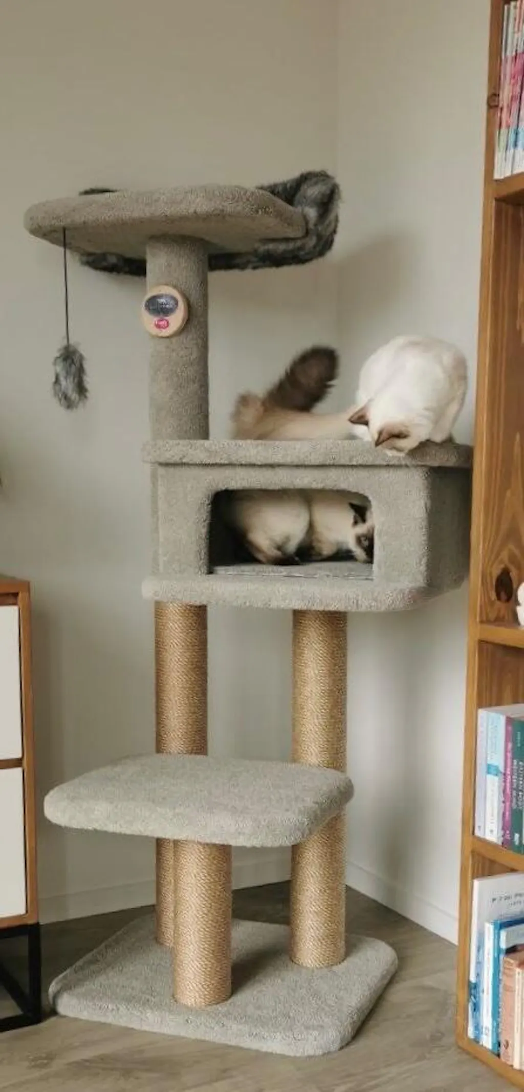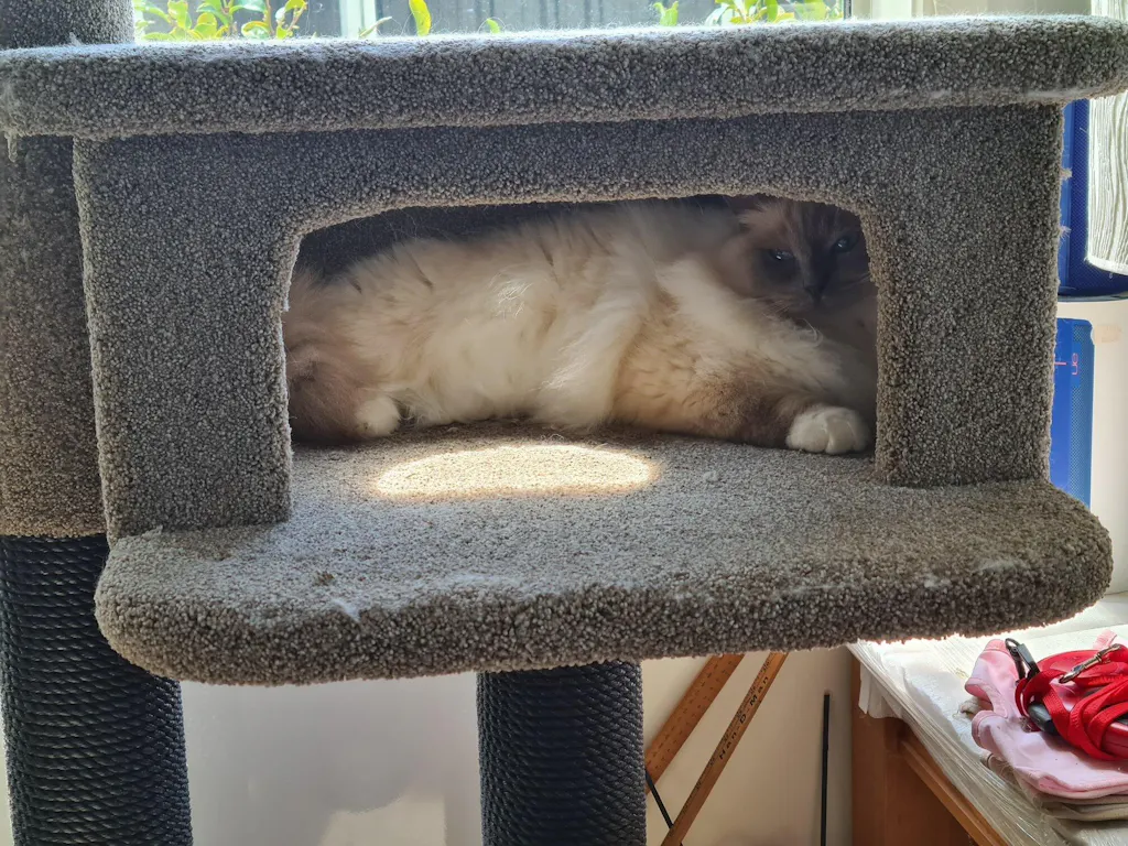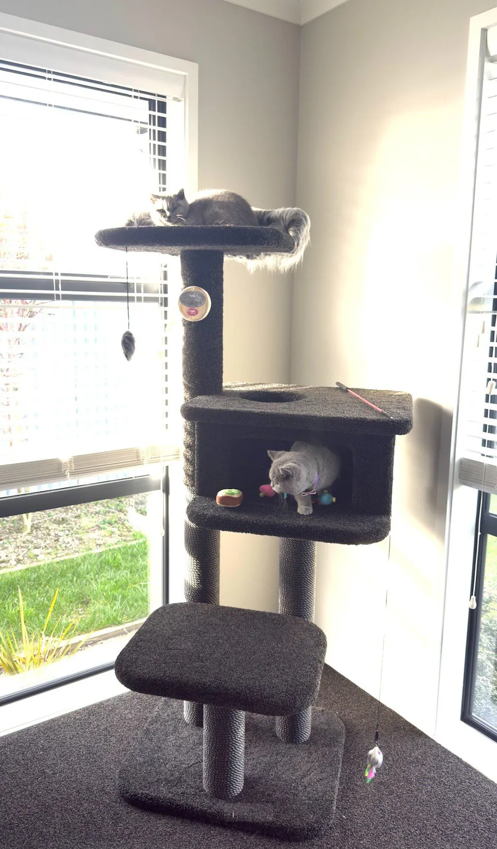 The Cubby House is a particular favourite among cats, with its soft carpet lining providing a warm and inviting place to snuggle and relax.