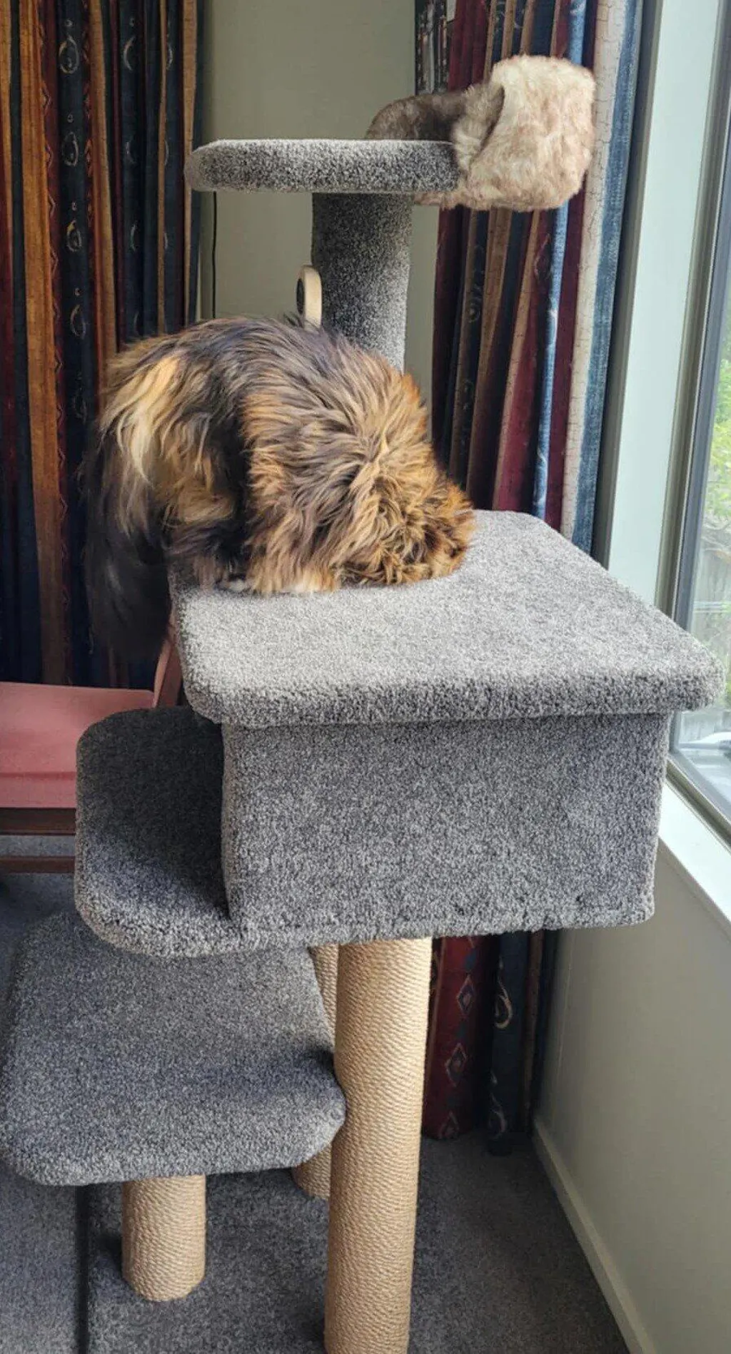 If you choose one of our bigger cat trees, it may take a bit longer to arrive as these units are made to order. Your tracking information will be sent to you immediately after your item/s are shipped. To transport them around New Zealand, for our larger trees we strap and pack them on pallets once they've left our factory you will be contacted by our bulk freight company.