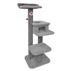 • Step up your cat's game with the luxurious Manhattan Cat Tree! This impressive cat tree is designed to keep your furry friend entertained for hours on end. With three cosy resting platforms and a charming Cubby House, it's the perfect place for cats to climb, scratch, and play.