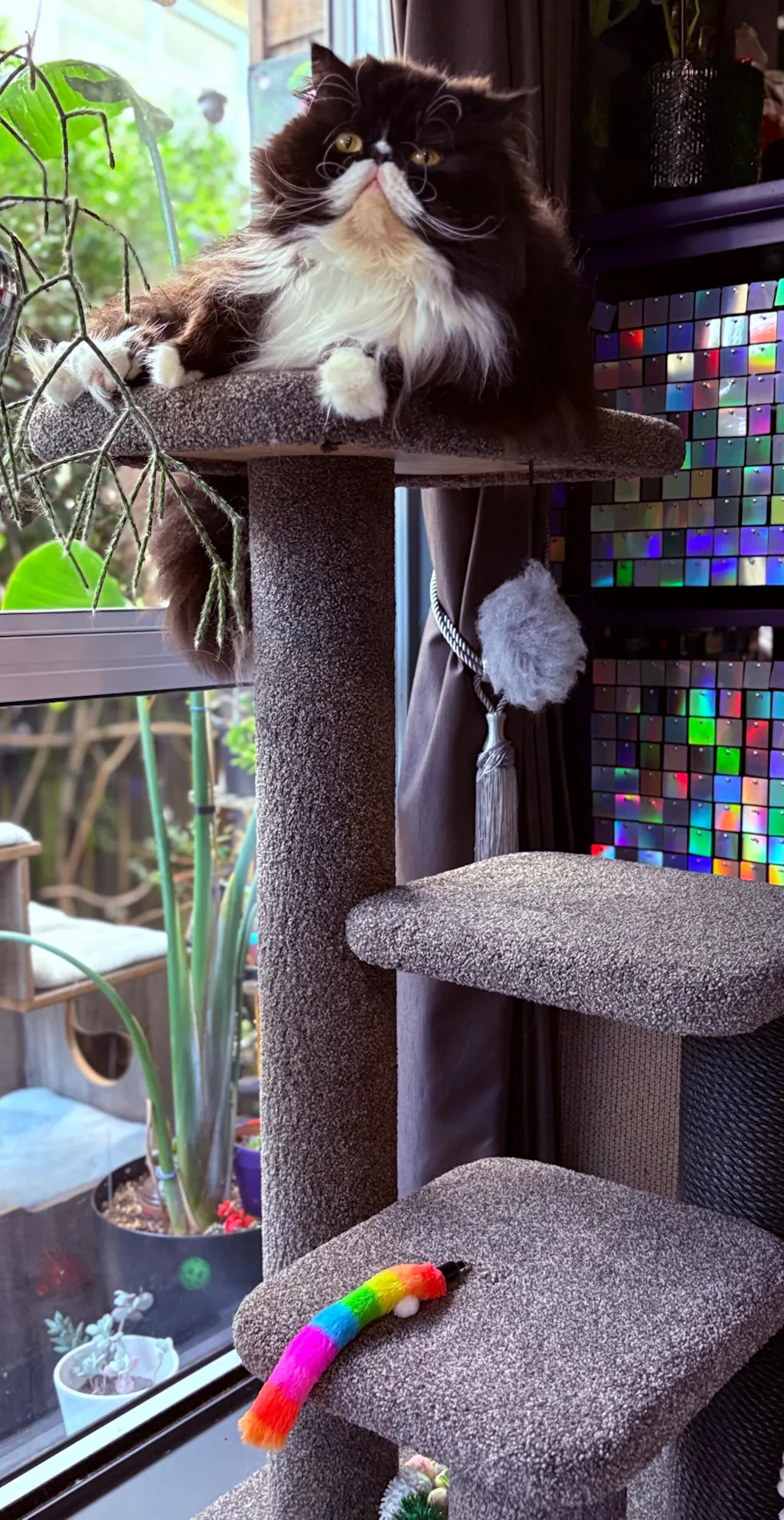 • Upon reaching the summit of the Rangitoto Triple Tree, your cat will undoubtedly feel like the regal ruler of their domain, vigilantly observing their loyal subjects (that's you!). This climbing structure boasts easy-to-navigate steps, ensuring that cats of all abilities can ascend to their royal throne with ease.