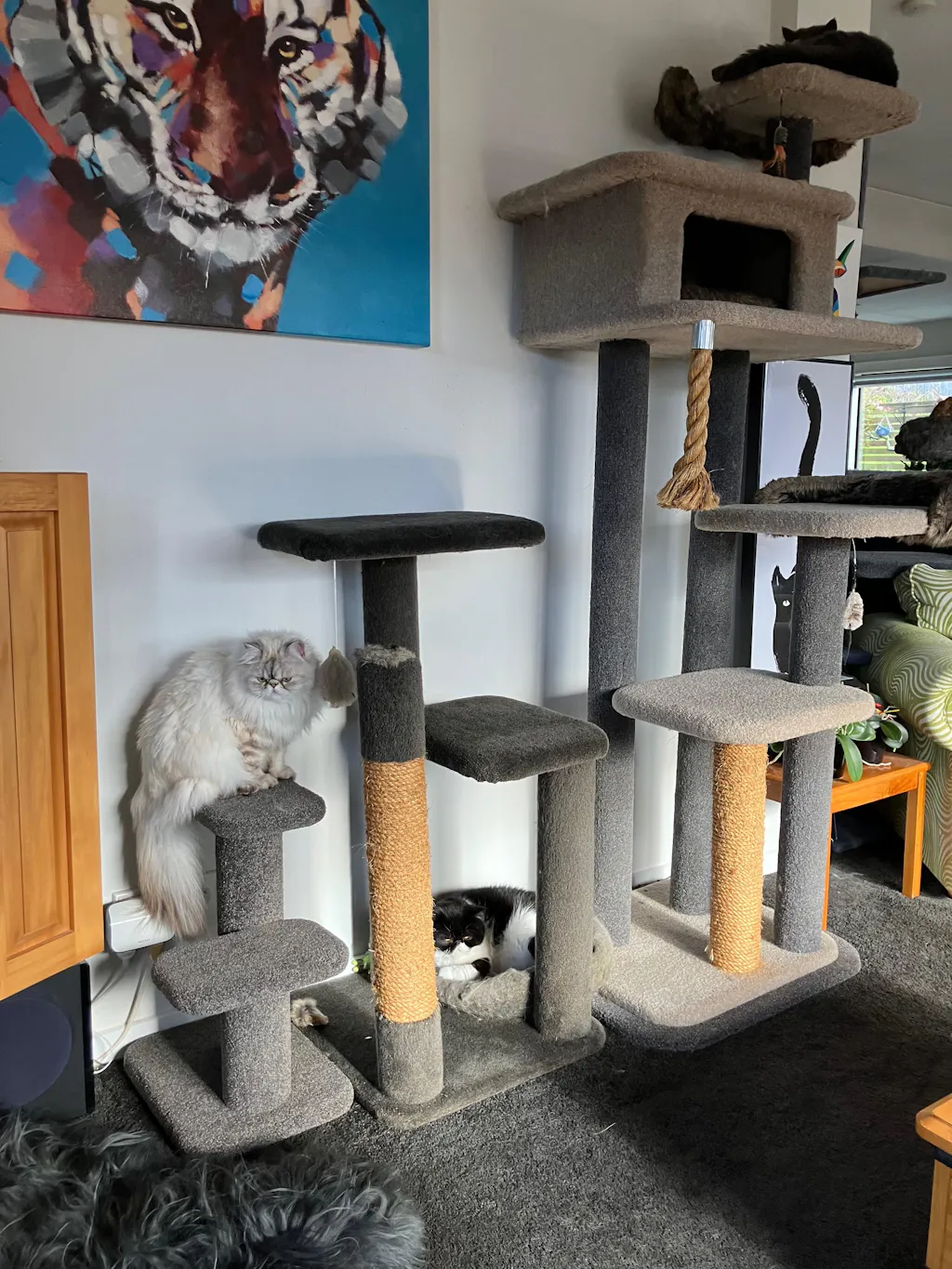 If you choose one of our bigger cat trees, it may take a bit longer to arrive as these units are made to order. Your tracking information will be sent to you immediately after your item/s are shipped. To transport them around New Zealand, for our larger trees we strap and pack them on pallets once they've left our factory you will be contacted by our bulk freight company.