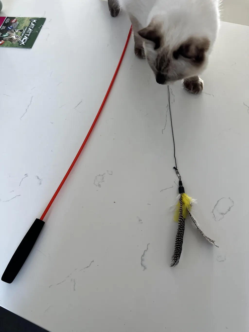 Our cat loves this toy, she never wants to stop playing with it! It’s extremely good quality! The feathers and bell are really securely fastened. We have played with it so much and nothing has come loose. It’s also got a really long, bendy wand and padded handle - which makes it so much easier to use. As soon as Freya hears the bell she comes running to play with it. Well worth the money! So much better than cheaper versions.